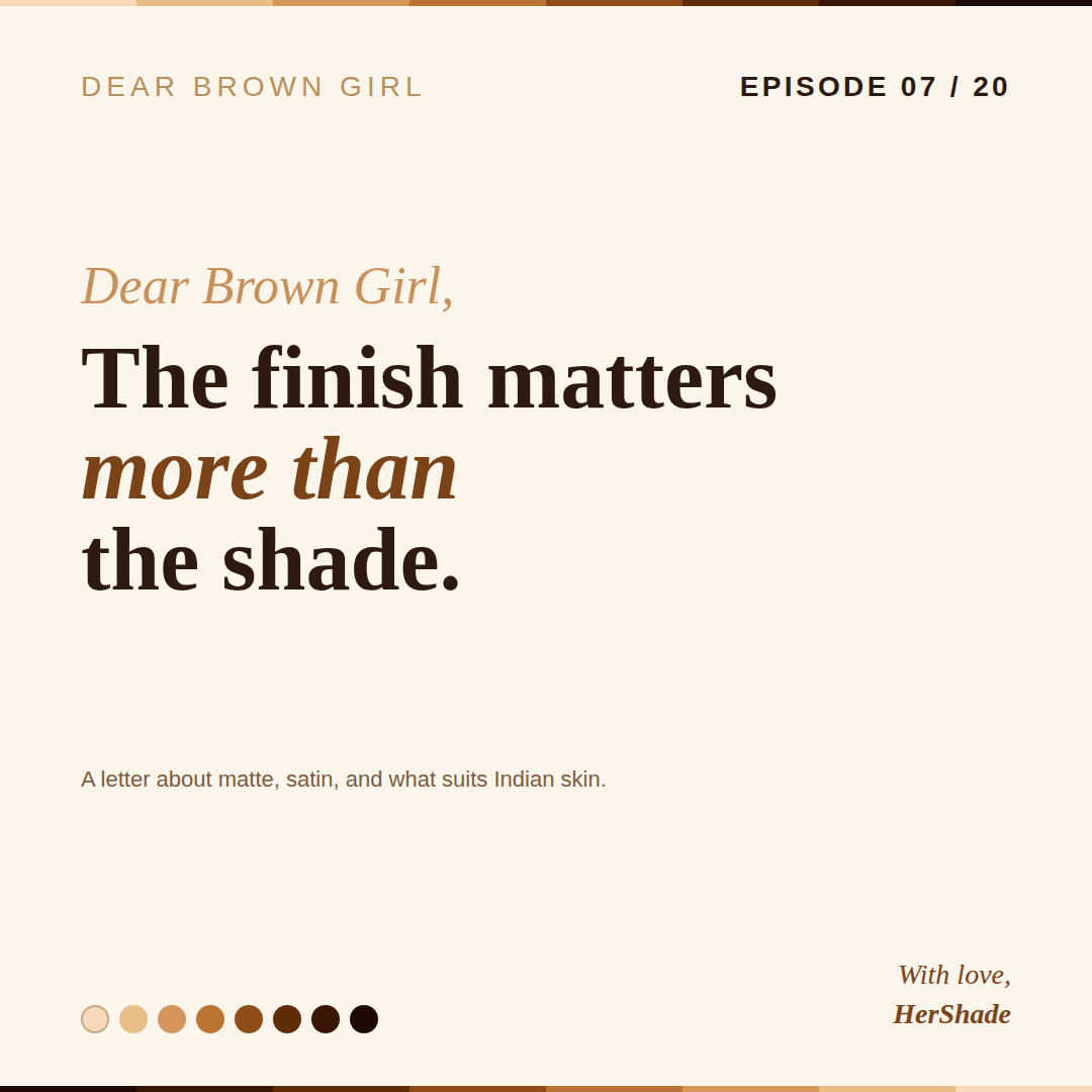 Dear Brown Girl, The Finish Matters More Than the Shade.